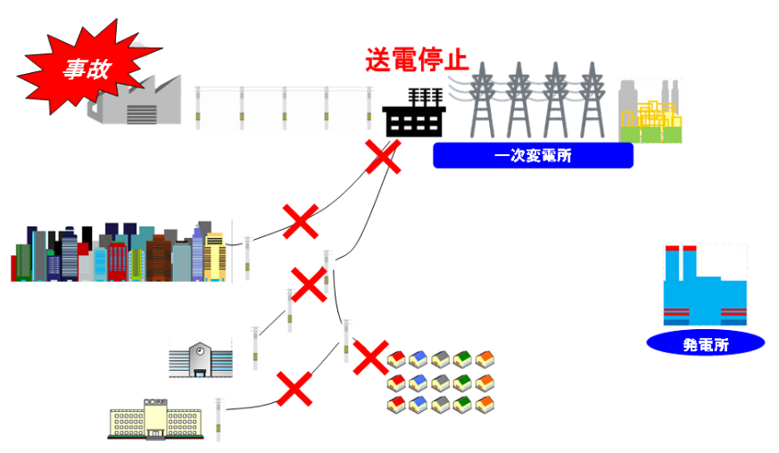 キュービクルは事業主の所有物ですが、供給される電力は周辺地域一体に送電されています。そこで、自社のキュービクルで起きた事故が原因で周辺地域また公共施設に停電が起こってしまった場合、自社の生産はもとより、近隣への影響 住宅・ビル・工場・病院・交通機関・交通信号システムに及んだ場合、その損害賠償をも請求されることになります。