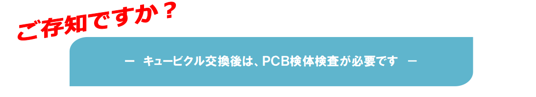 Qビクルの入替をする時、又はトランス油の入替をする際には、メーカーのPCB含有判定表に関わらず、PCB含有検査をお薦め致します。PCB含有検査結果があれば廃棄処理の際にお役に立ちます。(高圧コンデンサにおきましても同様です)