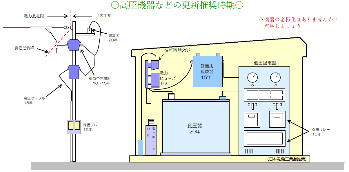 高圧機器などの更新推奨時期